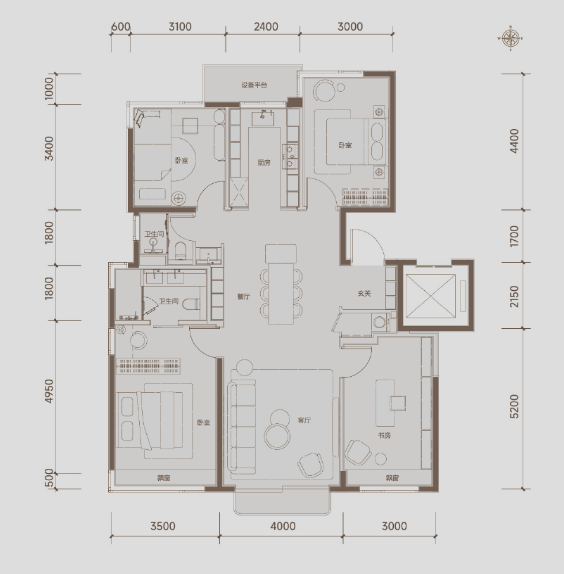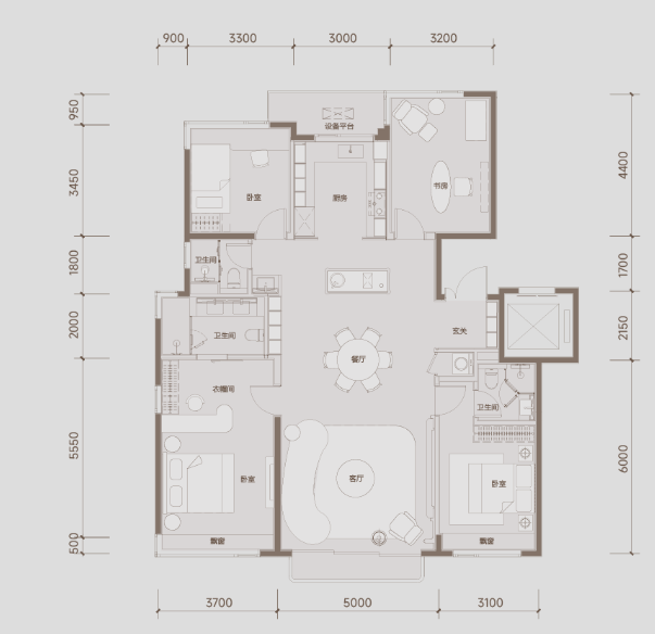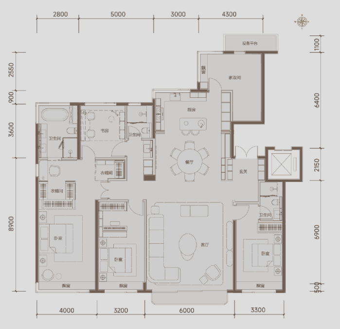 建筑面积: 140㎡(4房2厅2卫)